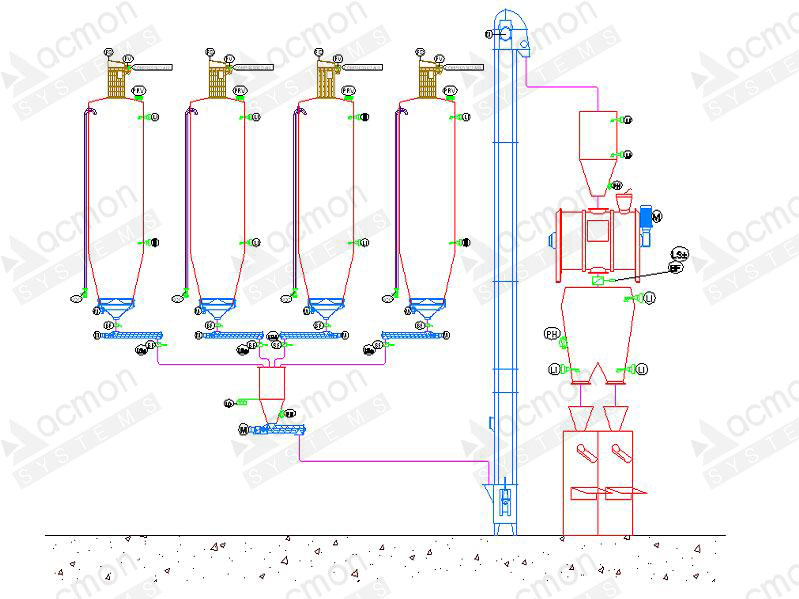 Solution for building materials based on cement. Industries for the produdtion of grout, glou tiles, adhesives of various types, plaster and mortar mix (colored or nor), supplements of construction materials, pigments, etc.Depending on capacity, we supply the following plants: