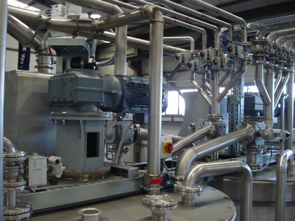 First stage is the main liquid raw materials reception and storage into tanks sized properly. There are also dedicated positions for liquid materials that are stored into IBC’s.