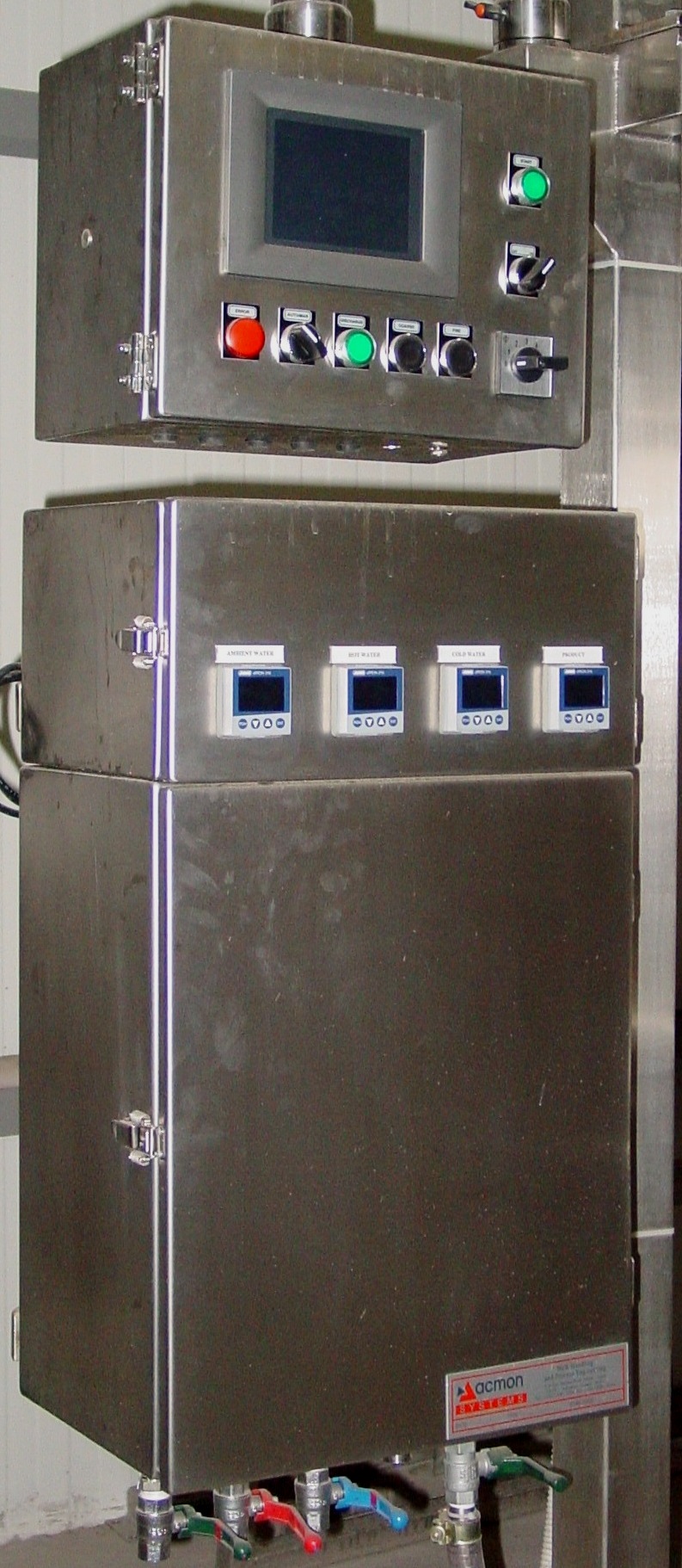 Alternatively we offer system connected with either Siemens PLC and Operation panel or with the BTPC-6 control weighing unit of the other recipe's materials (flour, sugar, etc) and touch screen 6 ". Controller BTPC-6 is a programmable industrial control unit in stainless steel case. BTPC-6 controls both weighing of main materials (flour, sugar, etc) and the dosing-mixing of water.